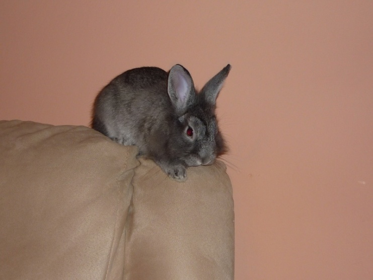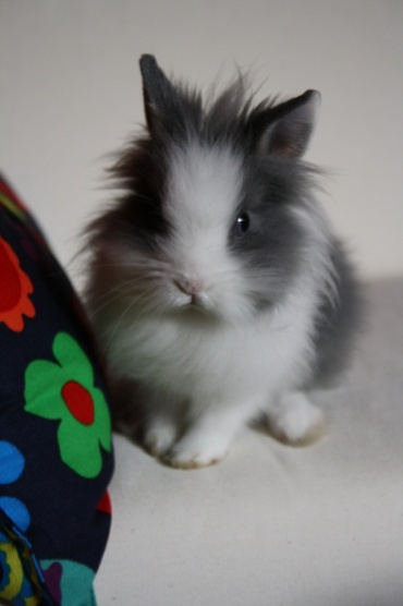 Já jsem si ušáčka přála, dostala jsem ho k vánocům od přítele. Spíš jsem pokukovala po beráncích ale když jsem uviděla pod stromečkem tohodle ďáblíka hned jsem si ho zamilovala, ta jeho neskutečná zvědavost a vymýšlení lumpáren.., je to úplně jedno jestli má uši dolu nabo nahoru, je to naše mimi. Největší legrace je sledovat ho když si vybíjí energii - vyhazuje prdelku do vzduchu, třepe hlavičkou a lítá po bytě sem tam jak kdyby mu přeskočilo