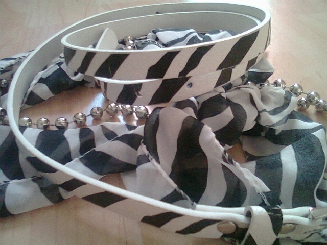 0Nový zebří šátek s lesklými perličkami + nový zebří pásek (velikost M) značky Claire's. Možno zakoupit i zvlášť. Poštovné a balné 70 Kč.