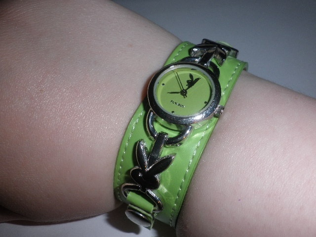 Krásné, nenošené hodinky s motivem Playboy, v barvě svěží zelené