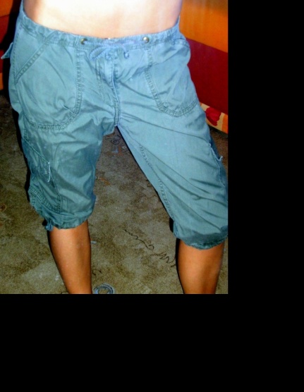 Prodám tyto 3/4 kalhoty zn. H&M v khaki barvě. Jsou se zapínáním na zip a pod koleny se dají kalhoty stáhnout šňůrkou.
