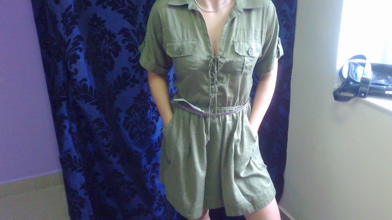 Šaty jsou zelené barvy mají dvě prsní kapsy na knoflíky.