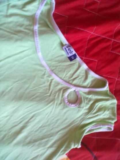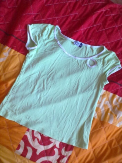 Zelené tričenko s kruhovou dírkou jako zdobení