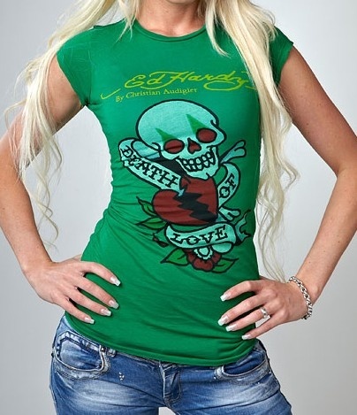 Koupím tričko značky Ed Hardy (nemusí být originál) ale trvám na hezké zelené barvičce (viz fotografie) - motiv může být jiný
