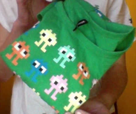 Prodám zelené tričko s barevnými potisky na celé přední části trička. Cena dohodou