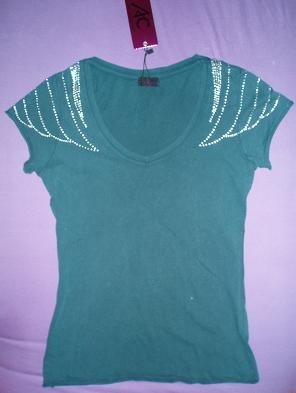 Krásné zelené triko značky Ann Christine. Zcela nové, vč. visačky. Krásná aplikace z kamínků na ramenou.Cena: 150,- + pošta