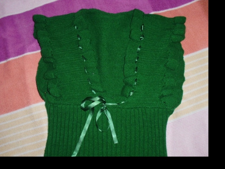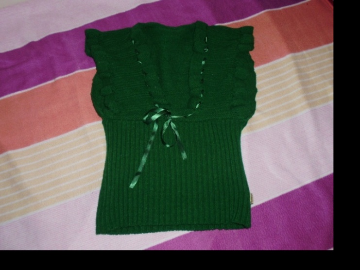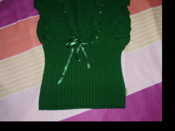 Prodám krásnou pletenou zelenou vestičku,velikost je S/M. Byla nošena jen 1x a je zcela bez vad. Moje cana je 120 kč. vč. pošty