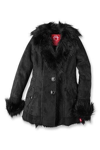 objednán na ebay, MaS (per una), a je super. černý, vevnitř má kožíšek, nahoře kožíškový šálový límec, je černý se stříbrným vyšíváním. jen je mi drobínek větší přes boky