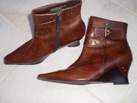 Zimní kožené boty na elegantním klínku, uvnitř kožíšek, špičaté. Téměř nenošené. Velikost 38 (5). Cena 400,- + pošta