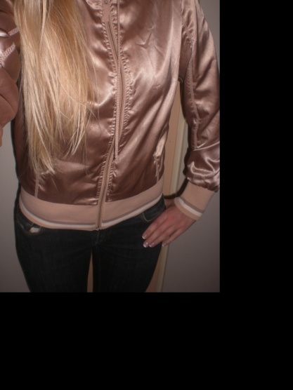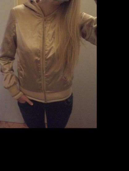 Párkrát vzatá, takže super stav. Uvedená vel. M, ale myslím, že S-ku velká nebude. Je lesklá, materiál něco jako satén, rukávy a bunda ukončeny béžovými náplety. Barva odpovídá nejvíce třetímu fotu.Cena 250 Kč s poštou