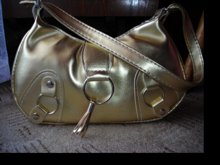 Zlatá luxusní kabelka se stříbrnými ozdobnými kroužky a cvoky