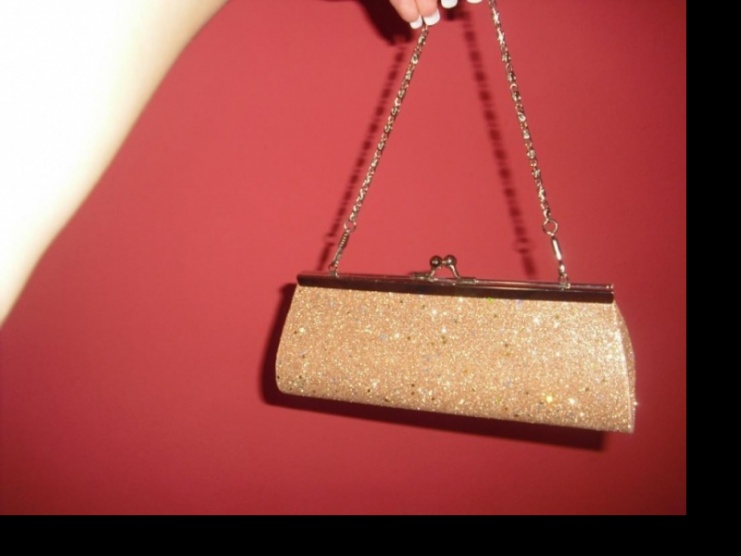 Zlatá kabelka s řetízkovým uchem, vhodná na ples či párty. Nová.