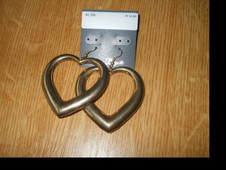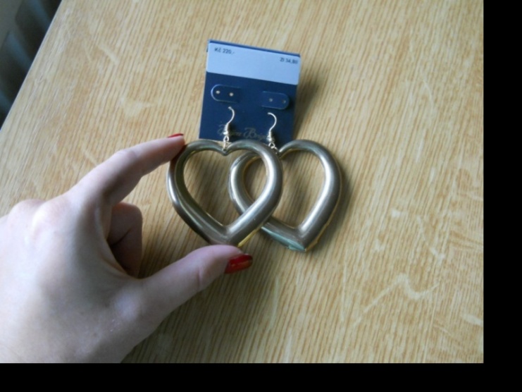 Naušnice zlatavé barvy,koupené v Bijou Brigitte,v nejširším místě mají téměř 6cm, na výšku 5,5 cm.