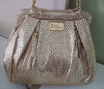 Nabízím zlatavou kabelku známé britské značky Paul´s Boutique. Kabelka je prostorná, ucha jsou řešena pomocí řetízků. Nošená minimálně, skvělý stav. Zapínání na dva patenty, uvnitř kapsičky na mobil a kliče, kapsa na zip. Podšívka z leopardího saténu.Pište si případně o slevu či výměnu.