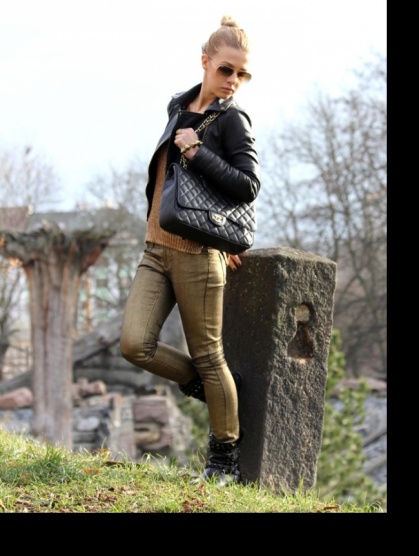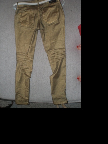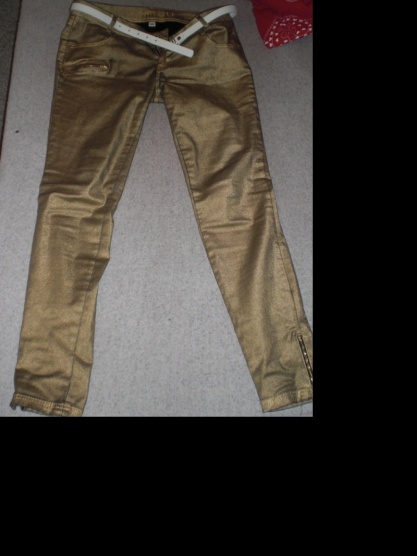 Prodám dvakrát nošené zlaté kalhoty. Nejsou přímo zlaté, ale materiál jako džínovina a pozlacené. Velikost je psaná 38, ale odpovídá 36. Přikládám fotku z blogu CzechChicks, má je Hanka.
