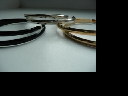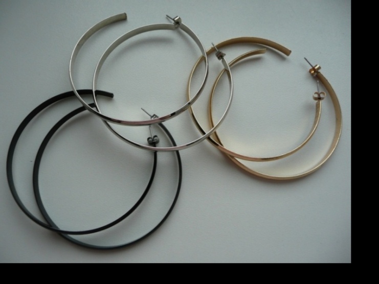 prodám sadu kruhových náušnic, průměr 7cm, nenošené, na mě moc velké. Zlaté, stříbrné a černé.
