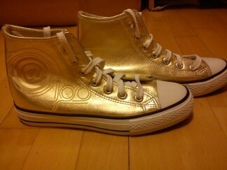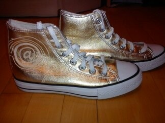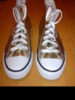 Nabízím velmi pěkné zlaté tenisky. Unáhlená koupě. V obchodě při zkoušení mi padly dobře, ale když jsem si je obula doma a chodila v nich (pouze doma), tak jsem zjistila, že mne tlačí