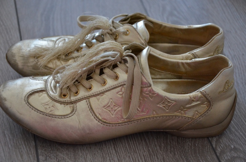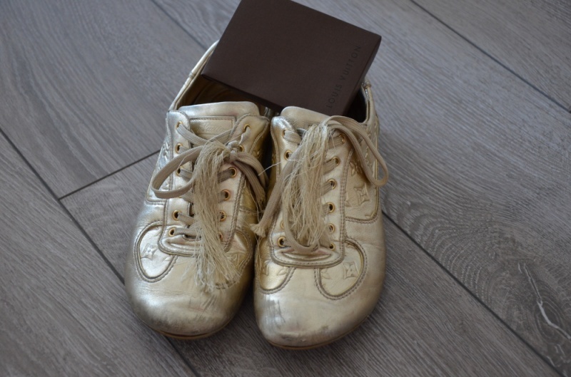 0Prodám nošené zlaté tenisky Louis Vuitton. Velikost 39. Na obrázku jsou tkaničky používané, ale v krabičce jsou úplně nové. PC byla 12 000Kč prodám za 4 400 + pošta