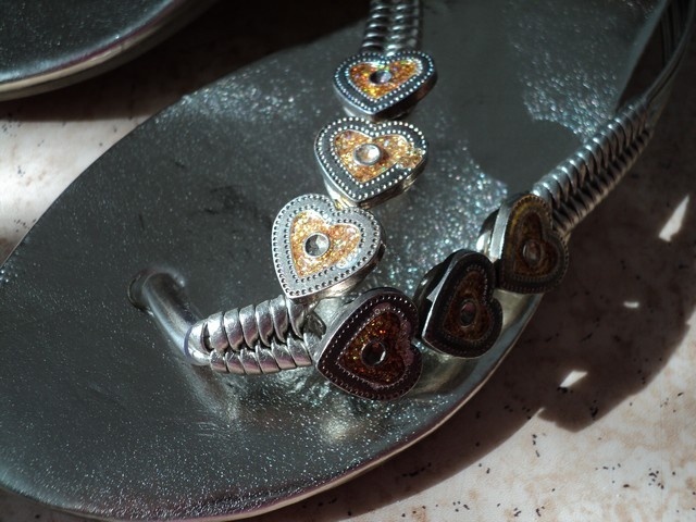 K prodeji nabízím žabky se srdíčky na nízkém podpatku.