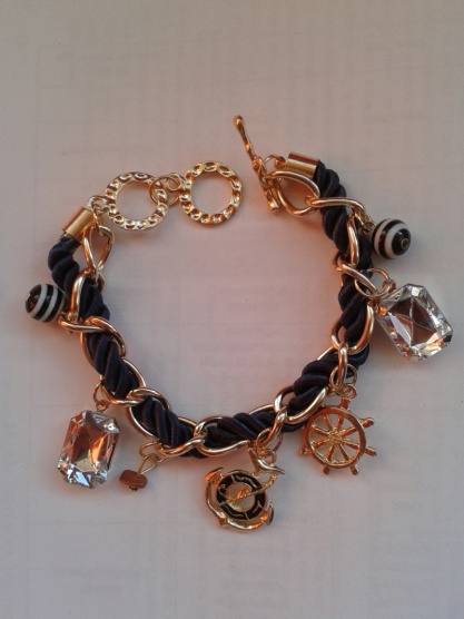 Zcela nový nenošený zlato-modrý Navy náramek s přívěsky. Vižuterie, Poštovné 40Kč.