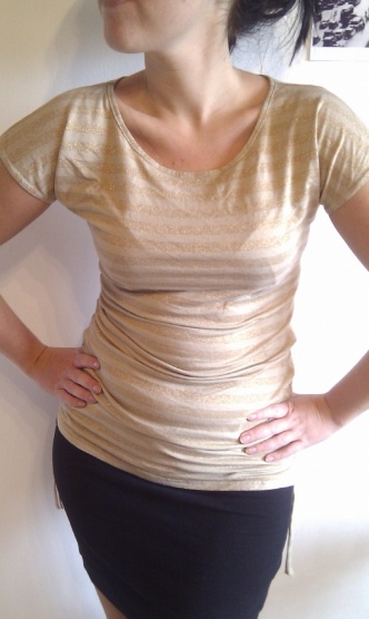 Spíše společenský top se zlatými proužky. Nabízím za symbolickou cenu 80Kč i s poštovným.