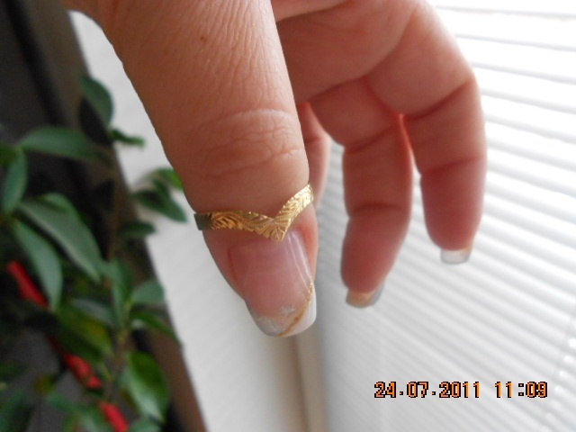 Prodám chvíli nošený zlatý prstýnek špičku (14k), s krásným rytím! Už ji nevynosím, mám prstýnků moc...průměr je 1,7cm. Nechám ho za 500,- vč. pošty