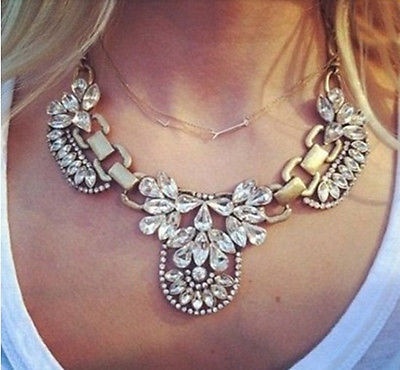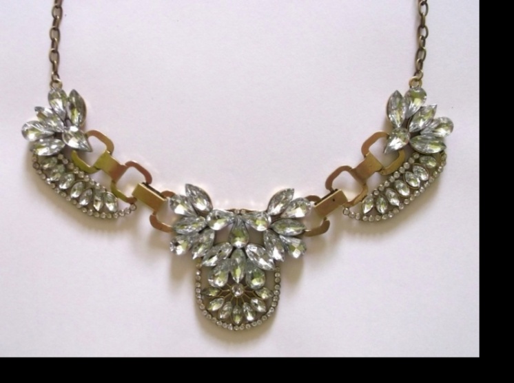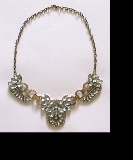 Krásný nový náhrdelník s krystaly ve starozlaté barvě.