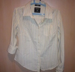 Žlutá halenka se světlým proužkem a s náprsní kapsou