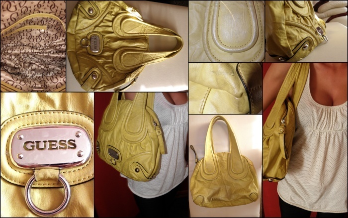 je nošená takže spíše vyměním za guessku třeba jiné barvy, kůže je trochu opotřebovaná viz. fotka,výrazně žlutá barvička, vnitřní úložná kapsa se zipem plus další. rozměry přikládám k další fotce, pokud má některá zájem nabídněte výměnu .