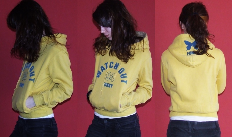 Nabízím žlutou mikinu s kapucí, velikost XS-S. Čistá, nepoškozená, mě už malá ..Původní cena 700,-kč .. prodám za symbolickou cenu 70kč.
