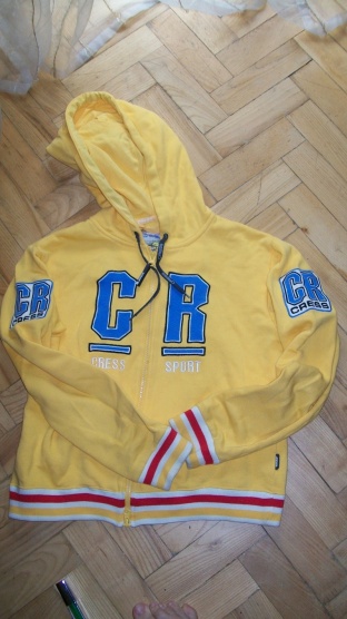 nabízím sportovní mikinu na zip s kapucí, kterou jsem měla párkrát na sobě, jednou praná, bez vad, žmolků apod.Na zádech velký napis Již nevyužiji, tak snad udělá ještě někomu radost.