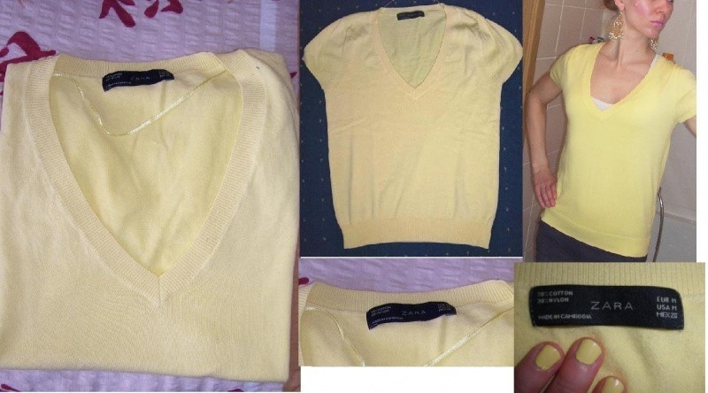 svetříková halenka do V,žluté pastlové barvy,sedí na Xs-menší M myslím je pružná.Moc hezká nošena příležitostně stav jako nová.Za zlomek PC.Dotazy pište
