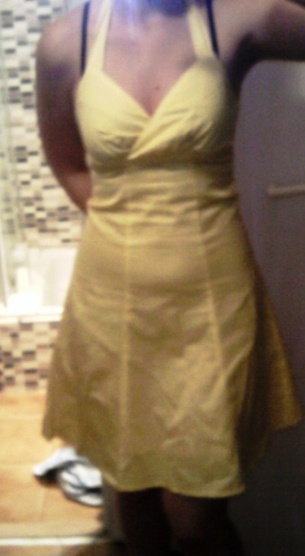 Nabízím 1x nošené kanárkově žluté šaty se zavazováním za krkem. Mají ještě podšívku, takže 2 vrstvy. Jsou lehounké. Měla jsem je jednou na vyřazení absoloventů. Leží mi zbytečně ve skříni nevynosím. (Nejsou vyžehlené)