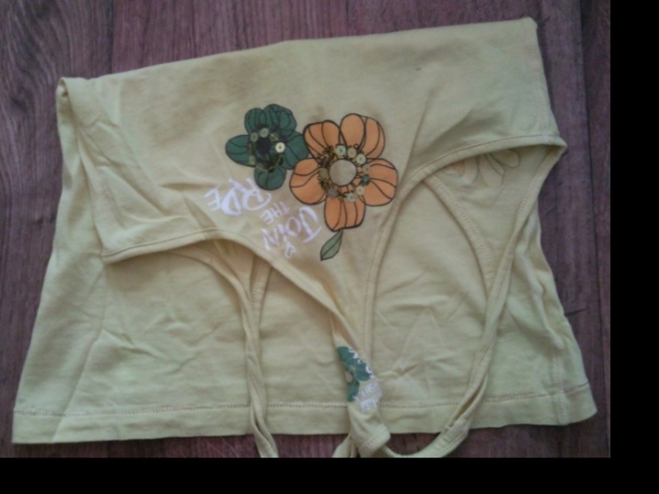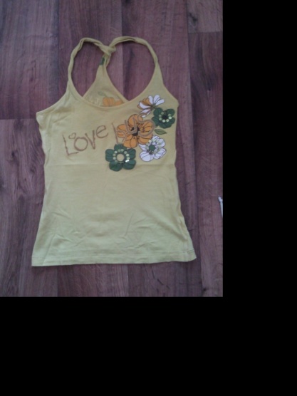 Prodám žluté tílko z netu, hezký potisk kytiček z obou stran. Cena 200,- včetně poštovného.