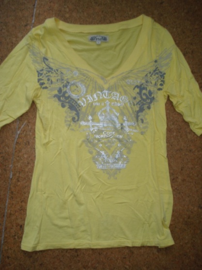 Prodám tuto žluté triko se stříbrným nápisem. Lze nosit i jako tuniku. 3/4 rukáv. Příjemný materiál. Cena 200 Kč.
