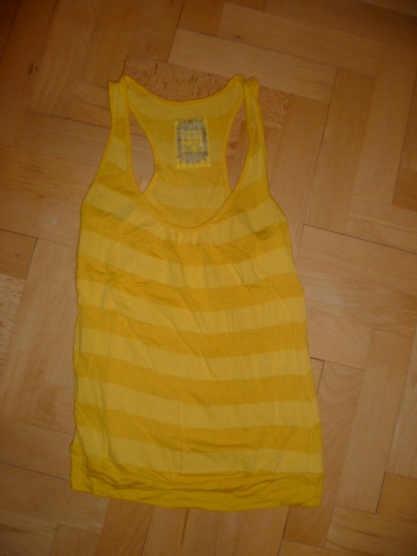 Žlutý proužkovaný nátělník s vykrojením na zádech zn. Bershka