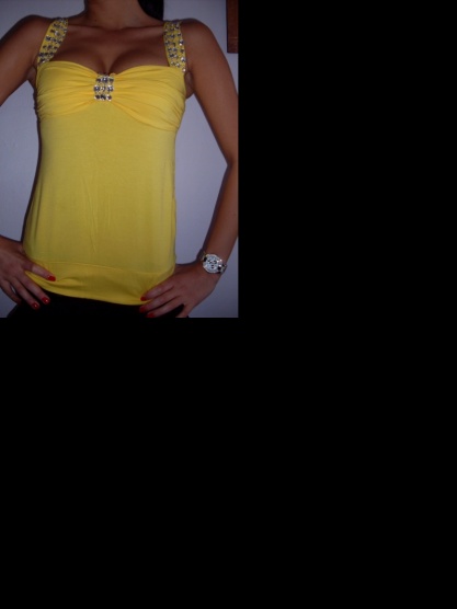 Prodám málo nošený žlutý topík s kameny v oblasti prsou a na ramínkách.