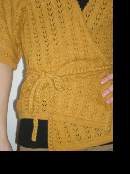 Krásný žlutý svetřík s děrováním a zavazováním na boku. Naprosto bez poškozený. skoro nenošený. Pište SZ