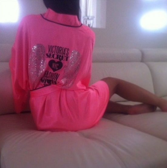 0Župan / košilka Victoria Secret - nový, růžový s kamínky na zádech, pásek je součástí, limitovaná kolekce z módní přehlídky, lehoučký, vhodný na spaní, nyní už k nedostání