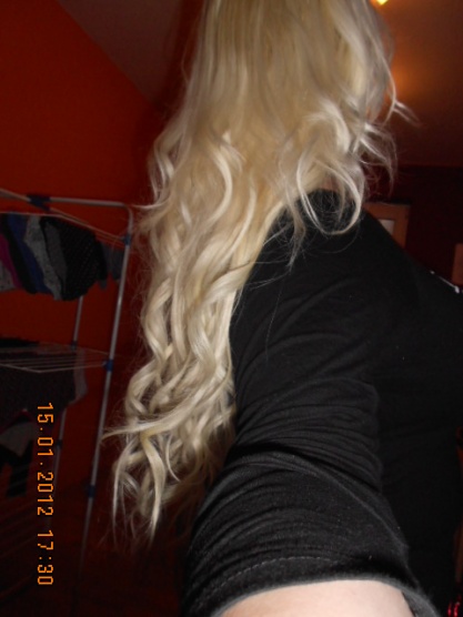 Tak přidávám svoje vlásky, pomocí kulmy teď narychlo udělané, omlouvám se za kvalitu, ale špatně se mě to fotí...